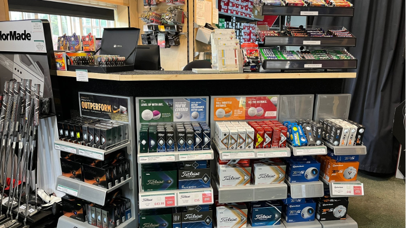 The shop stocks clubs by PING, Mizuno, Titleist and Scotty Cameron, and clothes from Galvin Green and Glenmuir, as well shoes from FootJoy and Sketchers.